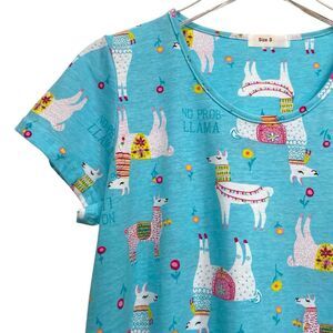 Blue Lama Print Cotton Blend Short Sleeve Nightgown Women's Size S NWOT