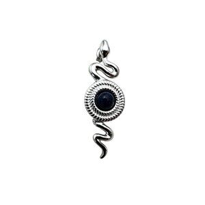 Elegant and unique, these chandelier earrings feature beautiful blue lapis lazuli stones set in a silver-tone snake design. Perfect for adding a touch of sophistication to any outfit.