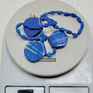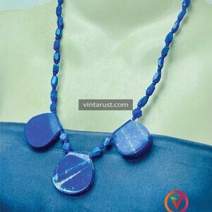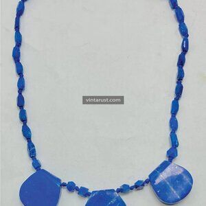 Lapis Lazuli semi-precious beaded stones are used to make this enthralling tribal necklace. Semu-precious lapis lazuli stones pendants are used in this necklace to enhance elegance of this beautiful necklace