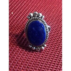 Native American Blue Lapis Ring Artist Mary Spencer Sterling Silver. Size 6.5