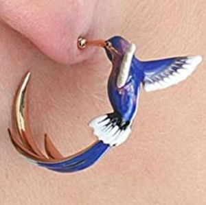 Blue Lavender Gold Flying Hummingbird Hoops Bird HoopEarrings Cute Birds New
