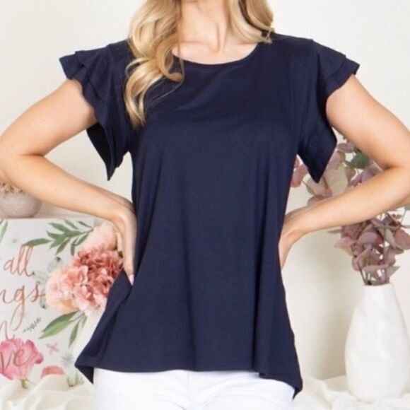 Pretty top with layered ruffle short sleeves. Great for any occasion.