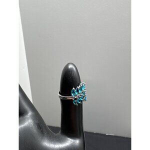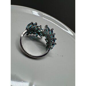 Blue Leaf Sterling Silver Ring With Marquise Cut Stones