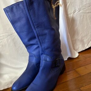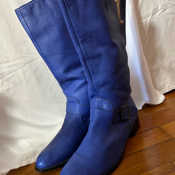 Step out in style with these elegant blue leather knee-high boots. Perfect for any occasion, they offer both comfort and sophistication.
