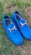 Step out in style with these vibrant blue leather loafers. Perfect for any occasion, these shoes offer both comfort and elegance./USED