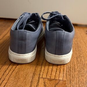 Step out in style with these sleek blue leather sneakers. Perfect for any casual occasion.