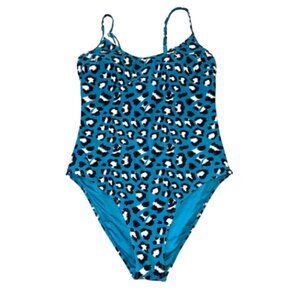 Blue Leopard Animal Print Women's One Piece Swimsuit Cheeky Full Coverage L