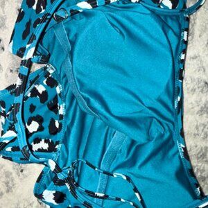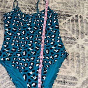 The Blue Leopard Animal Print Women's One Piece Swimsuit in size large offers a stylish and flattering option for women looking to make a statement at the beach or pool. With a cheeky full coverage design, this swimsuit combines comfort with a touch of daring. The animal print pattern in shades of blue adds a playful and trendy touch to the classic one-piece silhouette, making it a perfect choice for those who want to stand out while enjoying some fun in the sun. Condition: Great! No holes or stains. No size tag. Please see measurements in photos before purchasing. Bin -16-