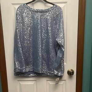 How cute is this?!?! Stylish blue leopard print top with added sparkle is perfect for any occasion. Comfortable and chic, this top adds a touch of elegance to your wardrobe.