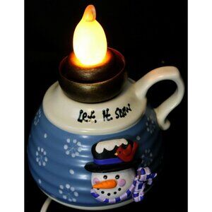 Blue Let it Snow Candle Lamp Snowman Face Snowflakes Handle Jug Winter Xmas