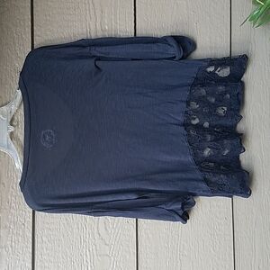 Blue Life Black 3/4 sleeve tee lace back front cutouts Modal XS