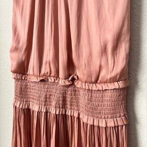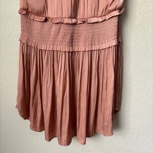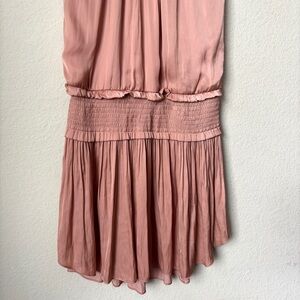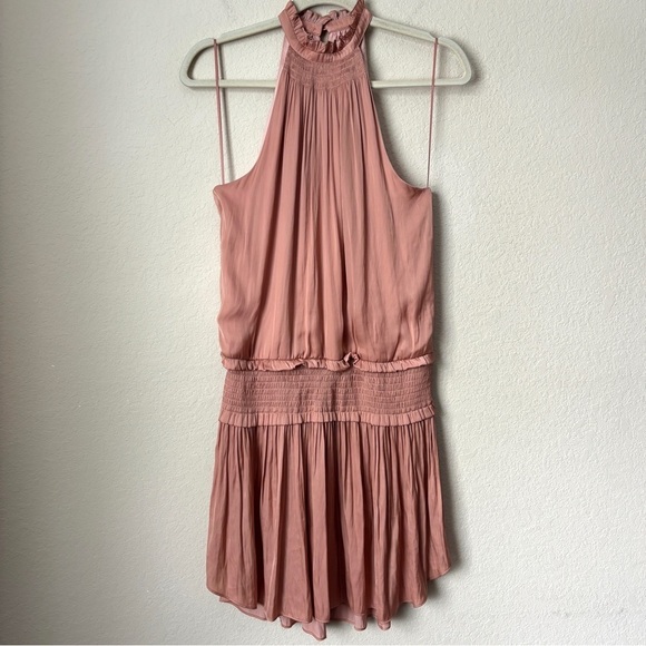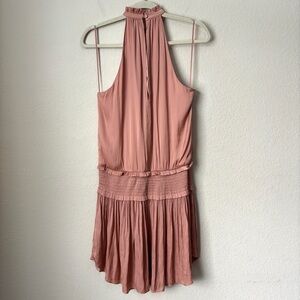Blue Life Boho Satin High Neck Halter Flirty Smocked Waist Mini Dress