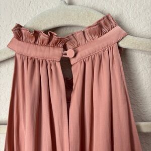 -High halter neck with ruffle trim