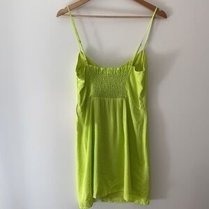 Design details: jacquard light leopard design, adjustable shoulder straps, smocked back panel, left slit at hem