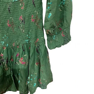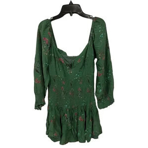 Blue Life Green Floral Ruched Sasha Mini Dress S
