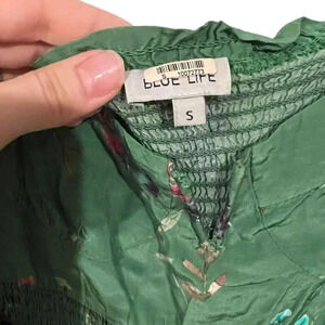 Ruched part is loose a bit. Blue Life Green Floral Size small Mini Ruched