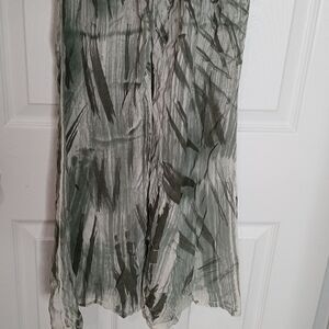 These stunning boot cut pants from Blue Life are crafted in a captivating light sage green color that features a shimmering finish. The high-waisted design fits snugly through the hips and thighs, flaring out beautifully from the knee for a dramatic effect. Made from a lightweight and flowing fabric, they showcase a subtle vertical texture that adds to their luxurious appeal.