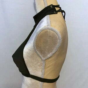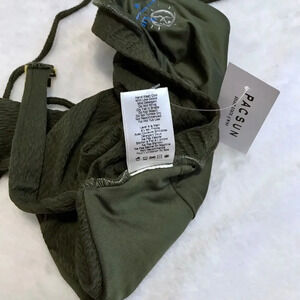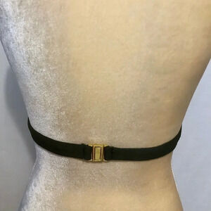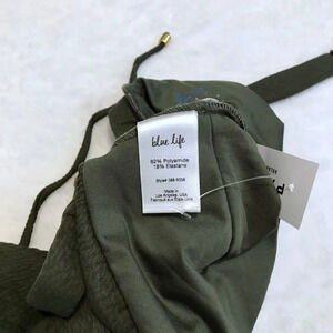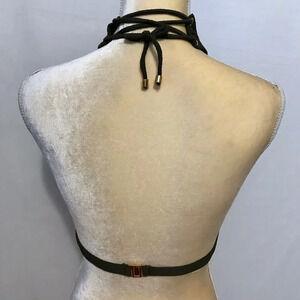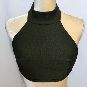 NWT. Hi Neck Swim Top for Women Size M. Olive, straps back neckline, elastic bottom hem, gold clasp for closure back, no padding but internal lining, textured feel. Pictures are part of description.