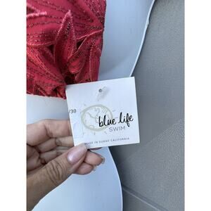 Blue Life Pasion flower Lace Bikini Swimsuit Triangle Top T-back Sz XS In Coral
