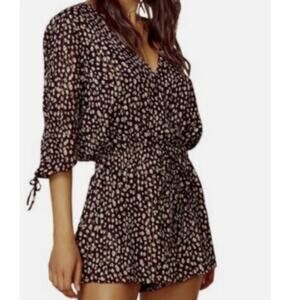 Blue Life Bruno Romper Midnight Cheetah Leopard Size Small Sold at Revolve. V neck romper with waist tie. Measurements are approximate.