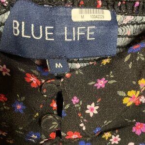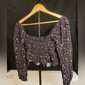Blue Life Smocked Floral Black Women's Top, size medium, preloved