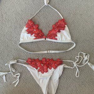 Blue Life Swim / Planet Blue Bikini Top red floral