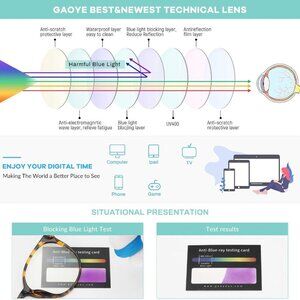 Bluelight Glasses] Blue light blockers with UV400 lenses block 100% harmful blu-ray & UVA/UVB rays, reduce discomfort from vedio, tv, phone, laptop, computer gaming or working under fluorescent lights; Protects your vision, help you anti glare, headache, eye strain, dry eye and sleep better