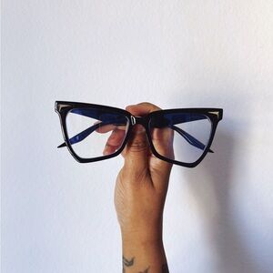 Blue Light Filtering Screen Protection Glasses Blue Light Filtering Screen Glasses featuring whimsical retro cat eye style black frames! Perfect for use with computer and phone screens for eye protection. No prescription. #screenglasses #glasses #computerglasses #bluelightglasses #sunglasses