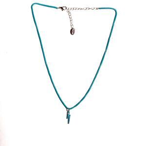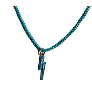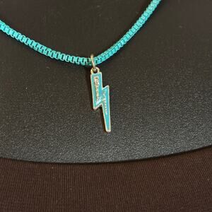 Blue Lightning Necklace Pendant on Box Chain 16" Vintage
