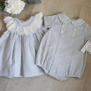 matching 3 month sister dress and 9 month brother romper available also (see other listings and last image)