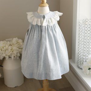 Blue Linen Float Dress Crocheted Lace Collar Bailey Boys Boutique NWT