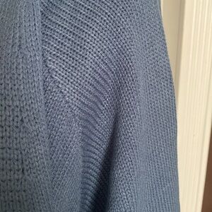 Blue Long Cardigan Sweater with Fair Isle Print in White & Cream on Sleeves. Sz L. NWOT