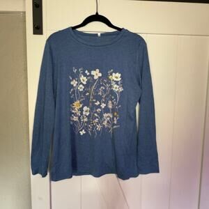 Blue Long Sleeve Wildflowers, Floral Tee Size M