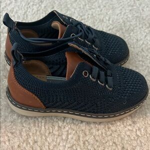 These blue sneakers feature a breathable knit upper for enhanced comfort and style. The light-colored sole provides a striking contrast to the dark upper, while the lace-up design ensures a secure fit. Perfect for casual outings, these sneakers combine sporty aesthetics with everyday functionality.
