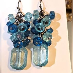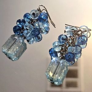 These adorable lucite crystal dangles have mini balls in both a light and in a darker shade of blue with a larger lucite crystal pendant on the bottom. They are lightweight and super fun with just the right amount of movement from the smaller "crystals."