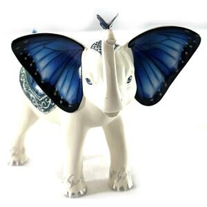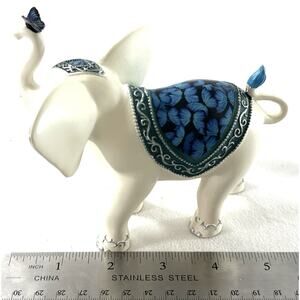 The Blue Majesty Hand-Painted Elephant Figurine by The Hamilton Collection is a small, elegant sculpture depicting a majestic elephant in white and blue colors. Hand-painted with intricate details, this resin figurine stands at 4.5 inches tall and 5 inches long, making it a perfect addition to any room in your home. Representing wild animals with an Art Deco style, this original piece from the 2000s is a beautiful decorative collectible that is sure to impress any adult collector. Made in China by The Hamilton Collection, this figurine is a unique and charming addition to any collection.