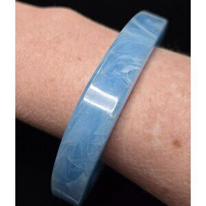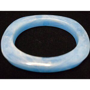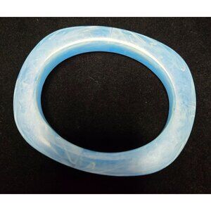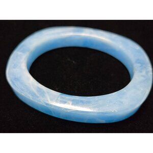 Blue marbled rectangle plastic bangle bracelet. 8" around inside. 1/2" wide. In good pre-owned condition.
