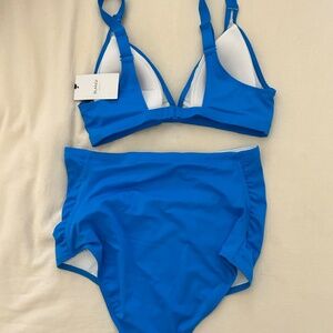 Blue maternity belly support, high-waisted bikini set #beachlife