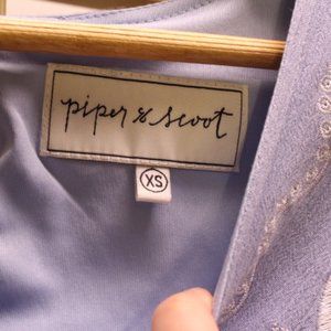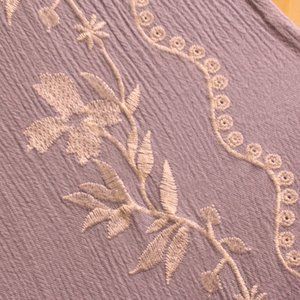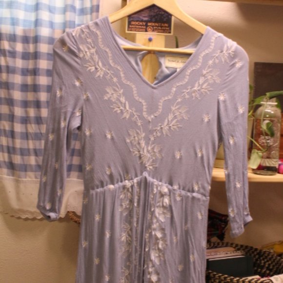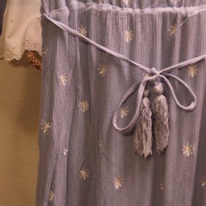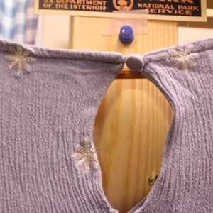 So cute and fully lined! There is embroidery over the whole dress with a keyhole opening in the back and elastic around the waist.