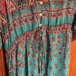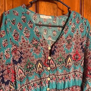 Blue Maxi Sundress with 3/4 Sleeves and Scoop Neck