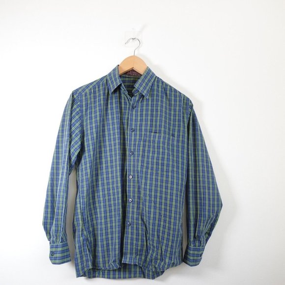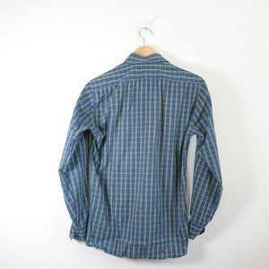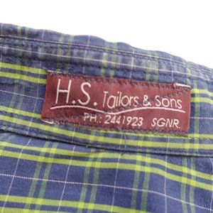 HS TAILORS SONS Blue Mens Shirt Size Large Plaid Button Down Madras Workcore