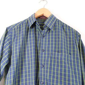 Blue Mens Shirt Size Large Plaid Button Down Madras Workcore HS TAILORS SONS