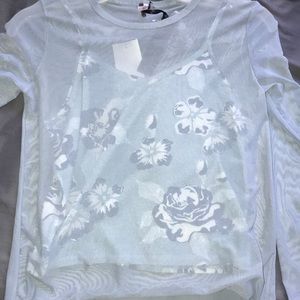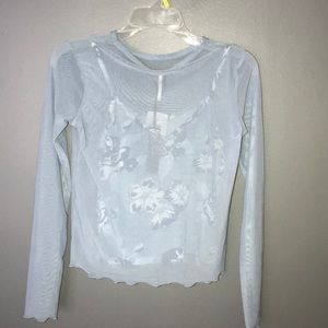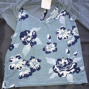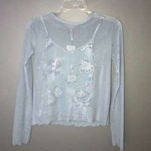 This blue mesh long sleeved top has an under floral tank top😍😍. So cute a stylish. Never worn. NWTS!!!