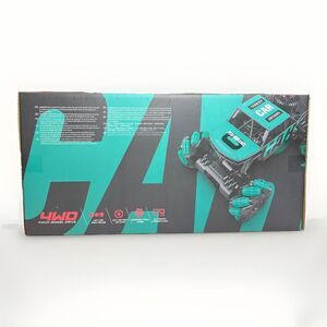 This is a Hobby Grade Metal R/C Monster Truck model called Speer, featuring a 1:1 scale with a blue/black color scheme. It operates on batteries for an electric motor, with a 4WD system and a 2.4GHZ frequency. The car is ready to go and suitable for both off-road and on-road surfaces. It is part of the RS4 product line from a brand based in China.