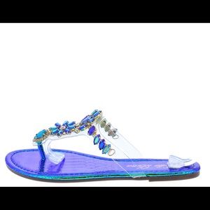 Blue Metallic Rhinestone Sandals