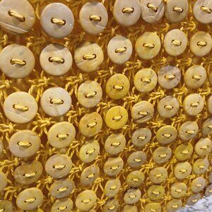 Base Material: The body is crocheted from thick yellow yarn, forming a flexible but sturdy mesh. The crochet work is tight and consistent, providing a solid foundation for embellishments.