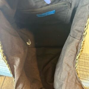 • Interior: Brown fabric lining with zip pocket and magnetic snap closure