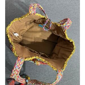 Blue Miami | Women's Multicolor Woven Canvas Straw Basket Beach Tote Handbag