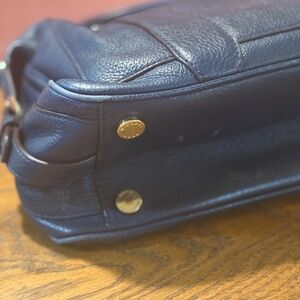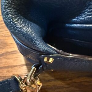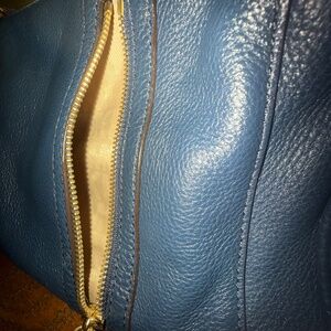 This gorgeous Michael Kors bag is perfect for everyday use. It features zippered pockets with Rebecca Mincoff style zipper pulls. The dark blue is so pretty. GUC, some small, minor signs of wear, pictured.