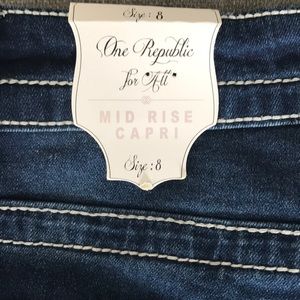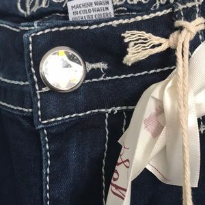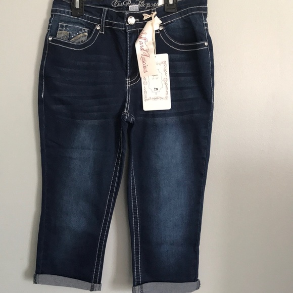 All set for the summer with these cute capris perfect for days when you don’t want to wear pants that is too short or long, has cat whiskers pattern in front, beautiful jewel button and on pockets.